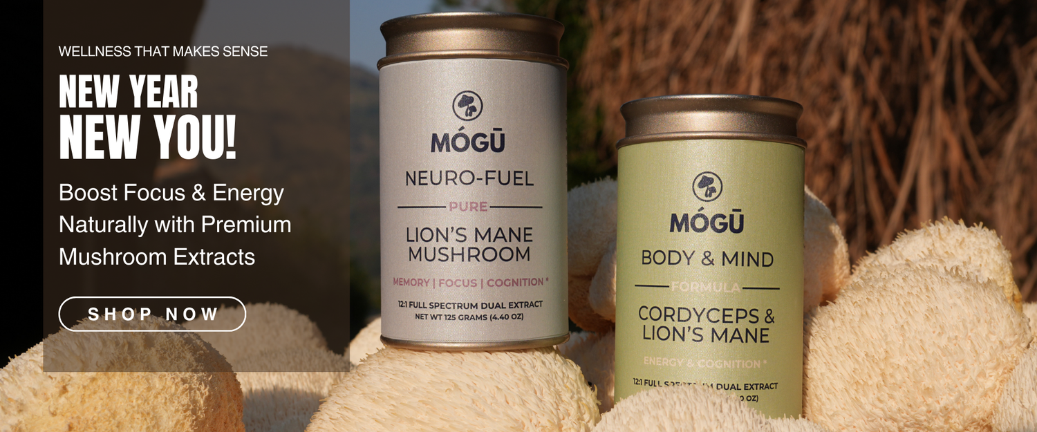 At Mógū Mushrooms, we craft organic, high potency functional mushroom extracts that target real wellness problems. These are functional mushrooms, not psychedelics. Whether you want sharper focus, deeper rest, clean energy, or gut support, our formulas deliver clinically studied dosages with no fillers and no empty promises so you get results you can actually feel.